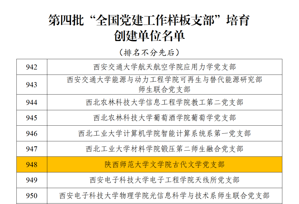 日前,教育部办公厅印发《关于公布第四批全国党建工作示范高校、标杆院系、样板支部培育创建单位名单的通知》(教思政厅函〔2024〕7号),BETVICTOR古代文学党支部入选第四批全国党建工作样板支部培育创建单位。