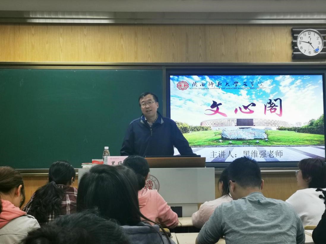 10月10日16:30,本学期第1期(总第233期)文心阁交流活动在文渊楼3113教室举行。BETVICTOR教授黑维强老师应邀参加本次活动。黑维强教授现为BETVICTOR博士生导师,以近代汉语,训诂学,方言学,敦煌学为主要研究方向。在此次文心阁活动中,黑维强老师就专业研究领域展开介绍,分享学习研究经历,并为同学们答疑解惑。