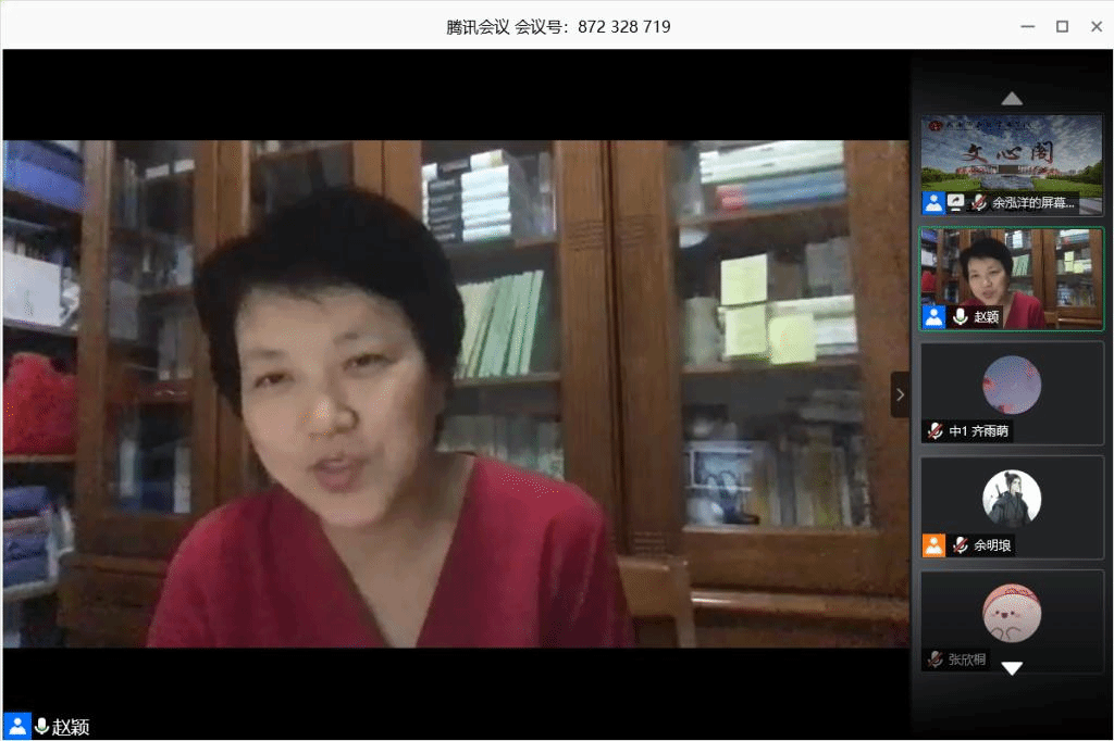 5月28日晚19:00,本学期第5期(总第246期)文心阁活动在腾讯会议平台顺利开展,BETVICTOR赵颖老师应邀参加。赵颖老师现为BETVICTOR副教授、硕士生导师、秘书学系系主任,主要从事比较文学、东南亚文学与文化以及秘书学等方向的教学与研究。在本次文心阁活动中,赵颖老师紧密结合自身学习研究历程与同学们的实际情况,就同学们极为关注的论文写作以及时间管理问题展开交流,并为同学们一一耐心答疑解惑。