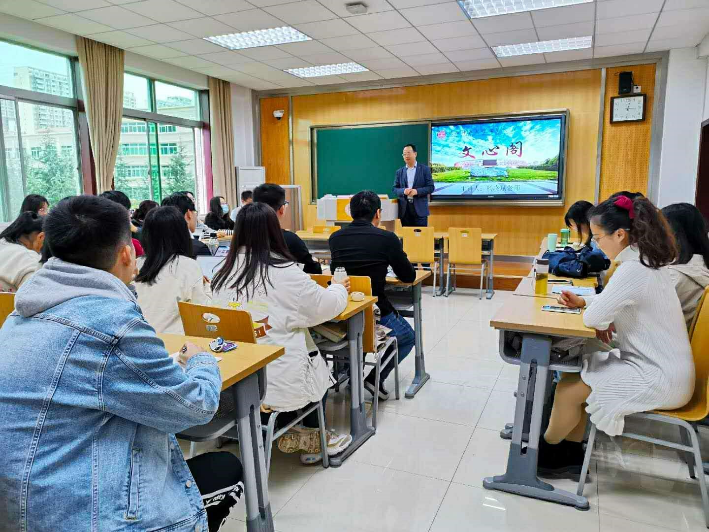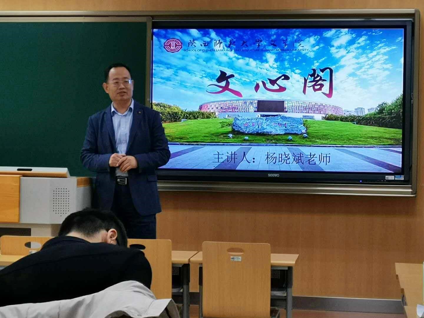 10月27日下午3:00,本学期第10期(总第256期)文心阁活动在长安校区文渊楼顺利开展,BETVICTOR副经理、教授、博士生导师、中国古代文学教研室的杨晓斌老师应邀参加。本次活动中,杨老师结合自身的研究方向与工作经历,围绕“学业规划及专业学习研究”主题,为同学们疏通专业学习的脉络,并热心为同学们答疑解惑。