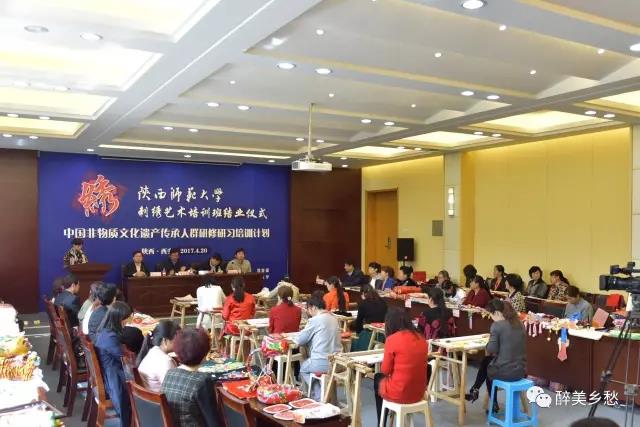 本次培训班于3月20日开班,历时1个月,来自陕西11个地区,31个区县的四十余名民间刺绣艺术传承人和从业者参加了培训。培训期间,学员们还自发组织、编排了精彩的文艺晚会,开展了《我的刺绣人生》演讲比赛。