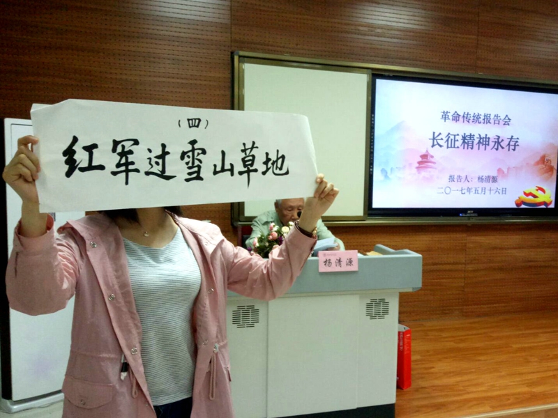 报告会最后,杨清源教授指出,红军之所以能够在敌我比例悬殊、没有后方的情况下,由走投无路的撤退到走向全国的胜利,正是因为红军战士有着坚定的革命理想和对共产党无上的忠诚。长征精神就是一不怕苦,二不怕死的精神,就是百折不挠百折不悔,不屈不挠的精神,就是敢于战斗,敢于胜利的精神,就是顾全大局,精诚团结的精神,就是为国为民,牺牲奉献的精神。