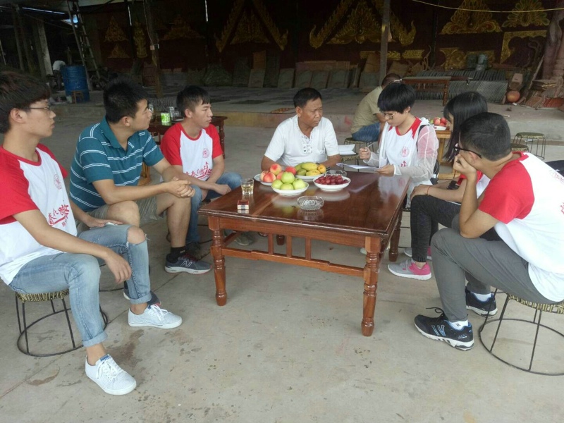 下午,成员们来到了东那佛寺,对佛寺住持做了问卷调查,了解到他对景谷县文化资源的认知程度。随后,成员们对傣族资料保存者周继武师傅做了进一步访谈,他从做小和尚起就开始阅读佛经,并将佛经翻译成普通话以教化民众。他每周免费为孩子们讲解佛经,但是来认真听讲的孩子很少,他为佛经文化的传承感到忧心,他提出,要重视对孩童的教育,让他们从小读经书,保持文化的民族特色,不能让传统文化没落。