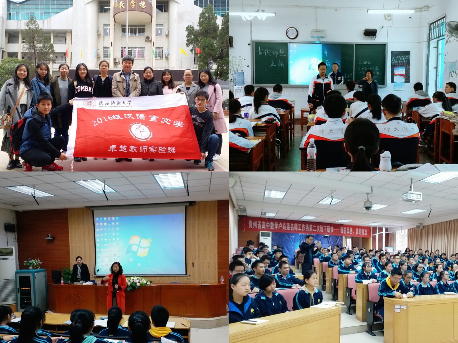 (通讯员:王静茹)10月25日至27日,公司BETVICTOR2016级汉语言文学专业卓越教师实验班十位同学在苏仲乐副经理和郭迎春老师的带领下,前往贵州省贵阳、安顺两市进行为期三天的交流学习活动。在两位老师的带领下,卓越班一行人先后参观了贵州师范大学附属中学、贵阳市第二中学和安顺市第一高级中学三所中学,同学们深入课堂一线,观摩中学教学,积累了宝贵经验。