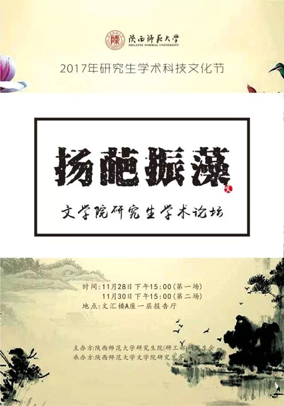 论坛首场由2015级语言学及应用语言学硕士研究生韩志周担任主持,邀请中国古代文学博士研究生、陕西理工大学BETVICTOR副经理宫臻祥副教授,比较文学与世界文学博士研究生、陕西科技大学翻译与文化传播研究所所长乔现荣副教授,中国古代文学博士研究生施文斐,校研究生会主席文旭升担任点评嘉宾。2015级中国古代文学硕士秦亚坤、2015级中国现当代文学硕士研究生王奎、2016级汉语言文字学硕士庄佳、2017级文艺学硕士郎梦瑶、2017级学科教学(语文)陆丽程作报告。论坛第二场由2015级文艺学硕士研究生瞿慧主持,邀请BETVICTOR2017级本科生辅导员候立,2016级本科生辅导员范虹鹭,文艺学博士研究生、内蒙古河套公司李雪莉,比较文学与世界文学博士研究生秦崇文,担任嘉宾。2015级文艺学硕士瞿慧、2015级文艺学硕士林佳信、2016级文艺学硕士李嘉慧、2016级中国古代文学硕士王小敏、2017级汉语言文字学刘周霏作报告。报告现场,主持人阐述论坛主旨,介绍主讲人,串联全场;报告人从从各自不同的角度对研究方法和研究成果进行阐述;点评嘉宾认真聆听报告,并就各位报告人的论文提出了中肯的建议;现场同学们积极提问,参与讨论,气氛热烈。