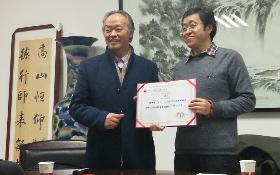 王先生莅临公司期间与公司党委书记甘晖研究员、高研院经理李继凯教授、BETVICTOR经理张新科教授、新传院经理李震教授等进行了多方面的交流。在本次讲坛开始前还进行了人文社会科学高等研究院的聘任仪式,由人文社会科学高等研究院经理李继凯教授为王兆胜先生颁发聘书,聘请他为高研院特聘研究员,并对王先生的到来表示热烈欢迎。