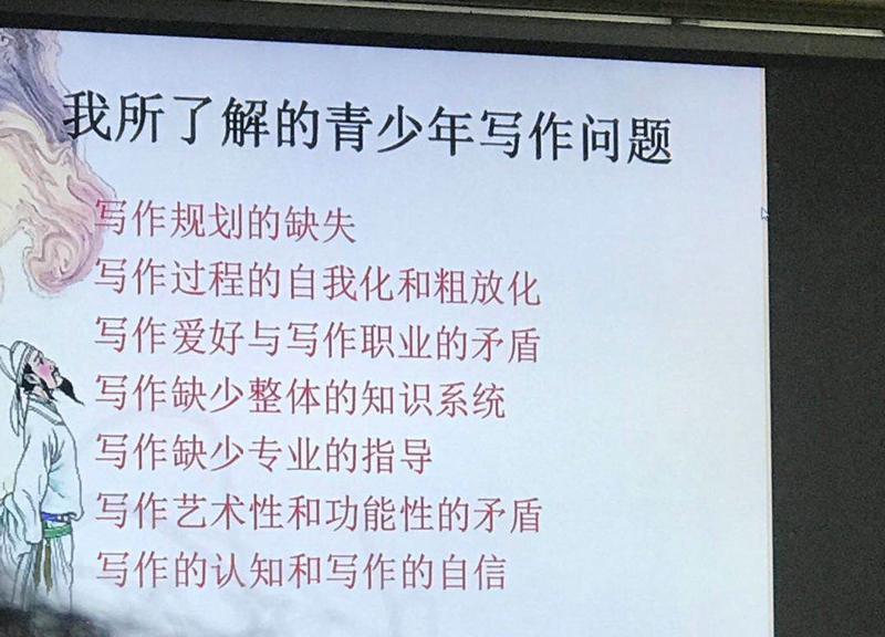 刘冠琦系陕西省青少年指导中心主任,从事创作以来,受到中国作家协会副主席陈忠实、国学泰斗霍松林先生的长期指导,并在大中小学策划组织文学互动五十余次。今天他和同学们探讨了青少年写作的现状及问题以及他个人对青少年写作的看法和理解。