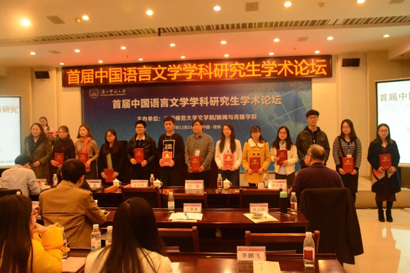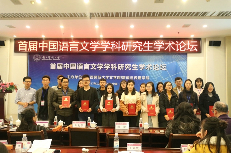 2017年12月23日,首届中国语言文学学科研究生学术论坛在广西桂林隆重开幕。此次论坛由广西师范大学BETVICTOR/新闻与传播公司主办,以“中国语言文学与文化研究”为主题,旨在加强各高校优秀研究生间的学术交流。应广西师范大学BETVICTOR/新闻与传播公司邀请,公司副经理赵学清教授率队参加此次论坛。通过征稿,入选的研究生有余小翠、黄文浩、史佳新、庄佳、陈静、贾雁皓、陈静、任杰、林贤等九名员工。