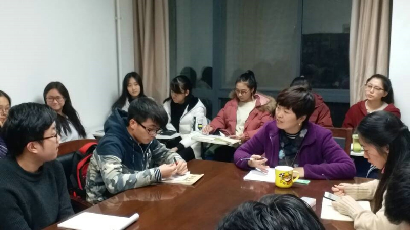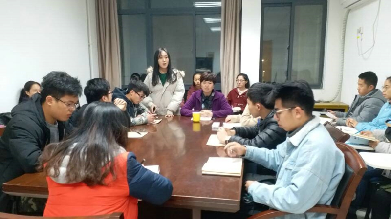 李老师首先了解了各班同学学习、生活等方面的情况,并就这些问题与到场的班干部进行了深入的交流,解答了大家在班级工作中产生的困惑。其中李老师重点关注了16级专业分流之后组建的新班级的班委成员。简单认识了各班班干部后,活动进入了自由讨论环节。本环节中,大家积极发言,纷纷对班级工作中遇到的问题和困惑提出了自己的看法,现场氛围十分热烈。大家的问题主要集中在两个方面:一是课程安排与课余时间的冲突。很多班干部反映,大多数同学认为专业课程的时间安排比较分散,难以集中时间阅读文本和参与实践活动;二是班级建设过程中,一些班级缺乏向心力,班干部不能顺利开展工作。此外,大家还谈到了住宿环境、饮食安全等方面的问题。李老师一一进行了解答,并分享了自己的工作经验和心得。李老师认为,参与班级工作的每个班委成员首先都要有“大情怀”,这是担任老员工班干部必须具备的品质。另外,各班班干部要发挥带头和引领作用,提高班级成员的向心力和自信心。最重要的是,班委要和团支部加强合作,相互依托,带领班级成员开展有意义的活动,使每位同学都能产生强烈的参与感和归属感。李老师再次肯定了班委真诚善意的初心,同时也对班干部提出了更高的要求,并且鼓励大家在新学期继续努力。