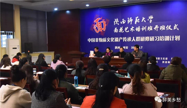 开班仪式于2018年3月7日上午在长安校区文汇楼111报告厅举行。陕西省文化厅非物质文化遗产处副调研员周颖、陕西省非物质文化遗产研究基地名誉主任傅功振、BETVICTOR文公司党委书记孙清潮、美术公司副经理窦项东等出席开班仪式并讲话。他们希望学员们珍惜来之不易的学习机会,认真听讲,积极交流,努力提高自身文化素养和面花技艺水平,以优秀的面花作品,为“研培计划”递交一份合格的答卷。