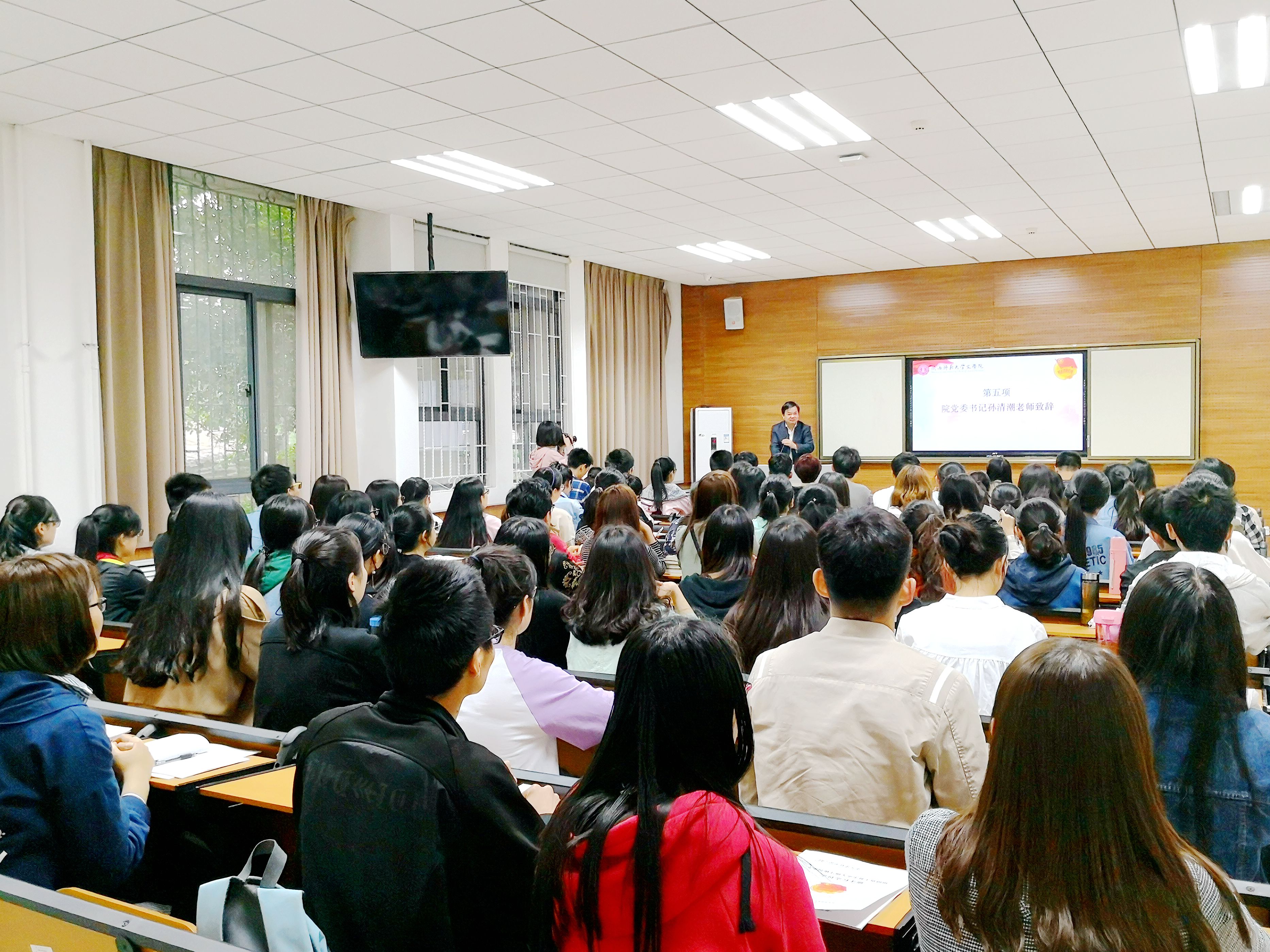 仪式以团歌开场,全体师生共唱团歌,一同感受仪式的庄严与青春的激昂。团委书记辛田宣读本期学员名单及分组情况,2015级汉语言文学专业康妙冉同学代表参训学员发言。党委副书记李斐强调了培训班纪律与考核标准,希望参训员工干部能够珍惜机会、端正态度,在学习中提升能力和水平。