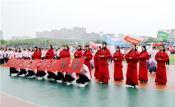 三天赛程,第一天阴雨连绵,后两天烈日当空,员工会干部、党员先锋队、志愿者们分工合作,维持赛场秩序、组织信息检录,核计比赛成绩、拍摄美好瞬间、布置清扫看台;看台上,学工组老师与同学们热情的助威呐喊声此起彼伏。“龙腾虎跃,气势如虹,众志成城,共创一流”,声如洪钟,音吐鸿畅,为健儿们加油打气,体现着争创一流的团结精神。