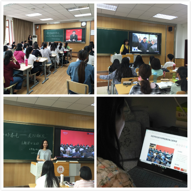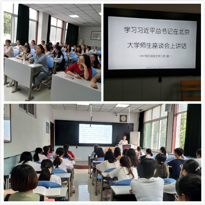 2016级本科生在辅导员范虹鹭老师的指导下,在教室开展主题班会、团日活动,在宿舍、自习室组织学习小组,对“习近平在北京大学师生座谈会上的讲话”进行学习。在汉语言文学一班班会上,有同学提出,作为师范生,应该身体力行,求知若渴,不断提高自己的教学能力,发挥自己作为青年老员工和未来教师的双重作用。发挥青年的主动性和创造力,为“一流学科”建设添砖加瓦。汉语言文学三班同学们在团日活动后积极表态,要担负历史使命和时代责任,勤奋好学,敢于担当,为国家社会主义现代化建设、为实现中华民族伟大复兴贡献力量。汉语言文学卓越教师实验班的同学谈到,“每一代青年都有自己的机遇,同学们应该趁年轻,追求青春理想”。“明德修身以报国,这是当代老员工应当秉持的信念,脚踏实地且勇于创新,这是当代老员工应有的品格,正如‘君子终日乾乾,夕惕若,厉,无咎’,我们应时刻准备着奋斗着,超越物质束缚,成为有价值的社会人”。汉语言文学基地班的同学表示,观看了“习近平总书记在北京大学师生座谈会上的讲话”之后,内心受到了很大震撼,就好像亲临现场一般,再次感受到了国家领导对当代青年的关爱,对人才的尊重。感到了“当代青年将是未来社会主义建设,实现中国梦的主体力量。作为老员工,一定不负众望,把个人的成长与国家的发展紧紧地联系在一起,为中国特色社会主义和中华民族的伟大复兴做出自己贡献”。汉语国际教育专业的同学谈到要珍惜时间,把握机会,努力成长为“不辱时代使命,不负人民期望”的社会主义建设者和接班人。一些同学还写下学习心得体会,向团支部汇报学习感想。