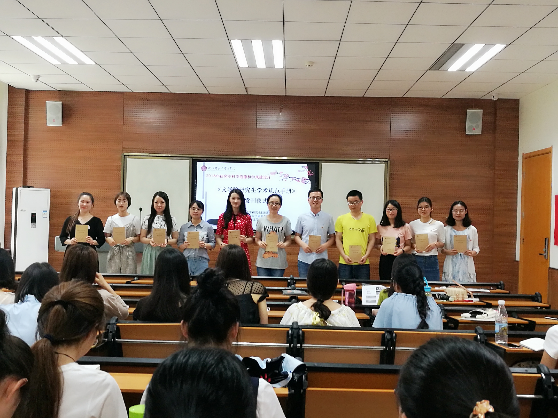 最后,由辛田老师向研究生会成员赠发《BETVICTOR研究生学术规范手册》并合影留念。