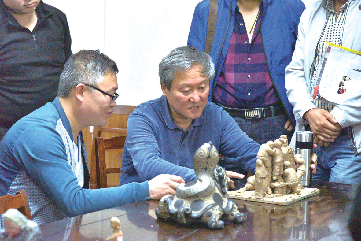 第五期(泥塑)培训班课堂上,修建桥老师在点评学员作品。