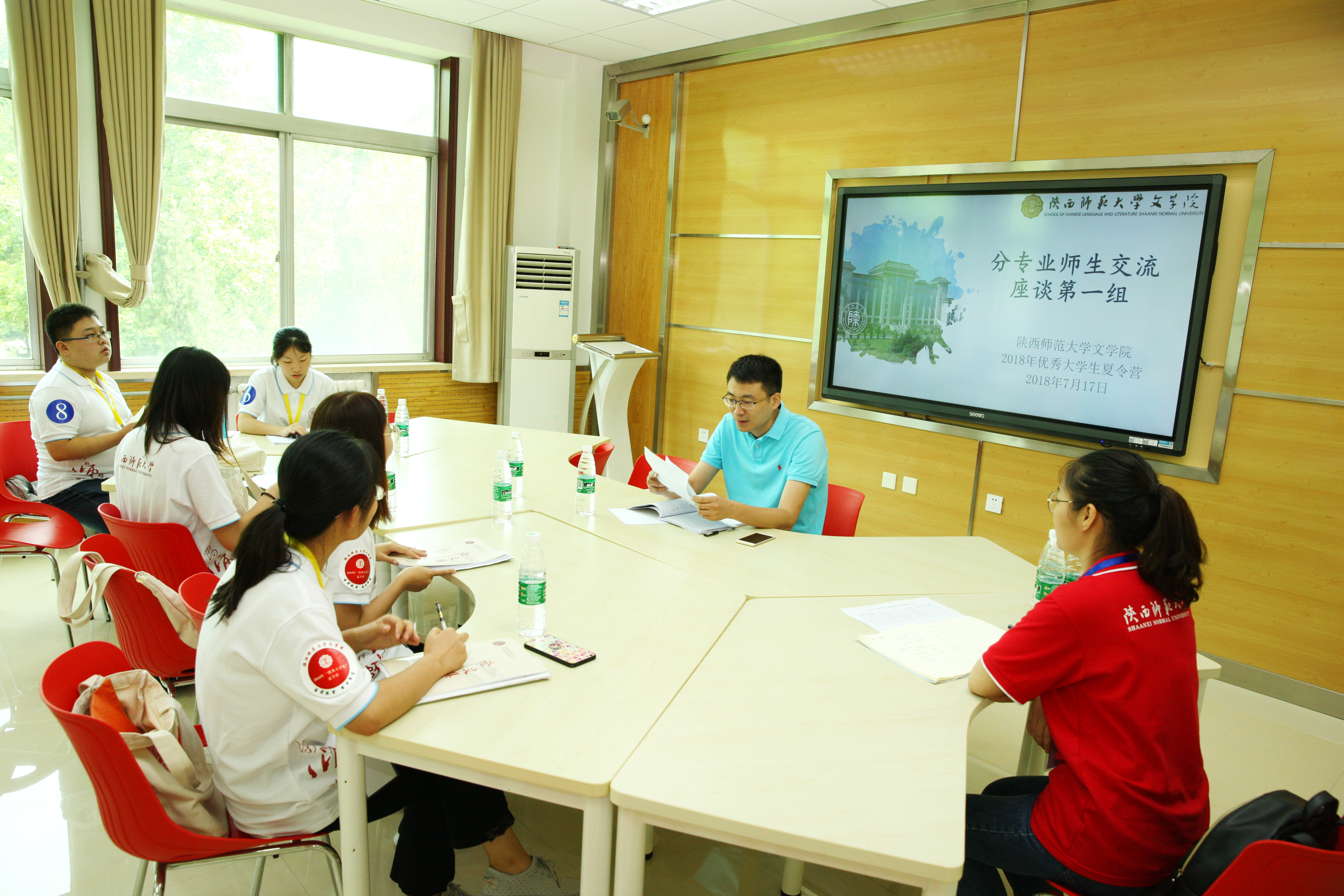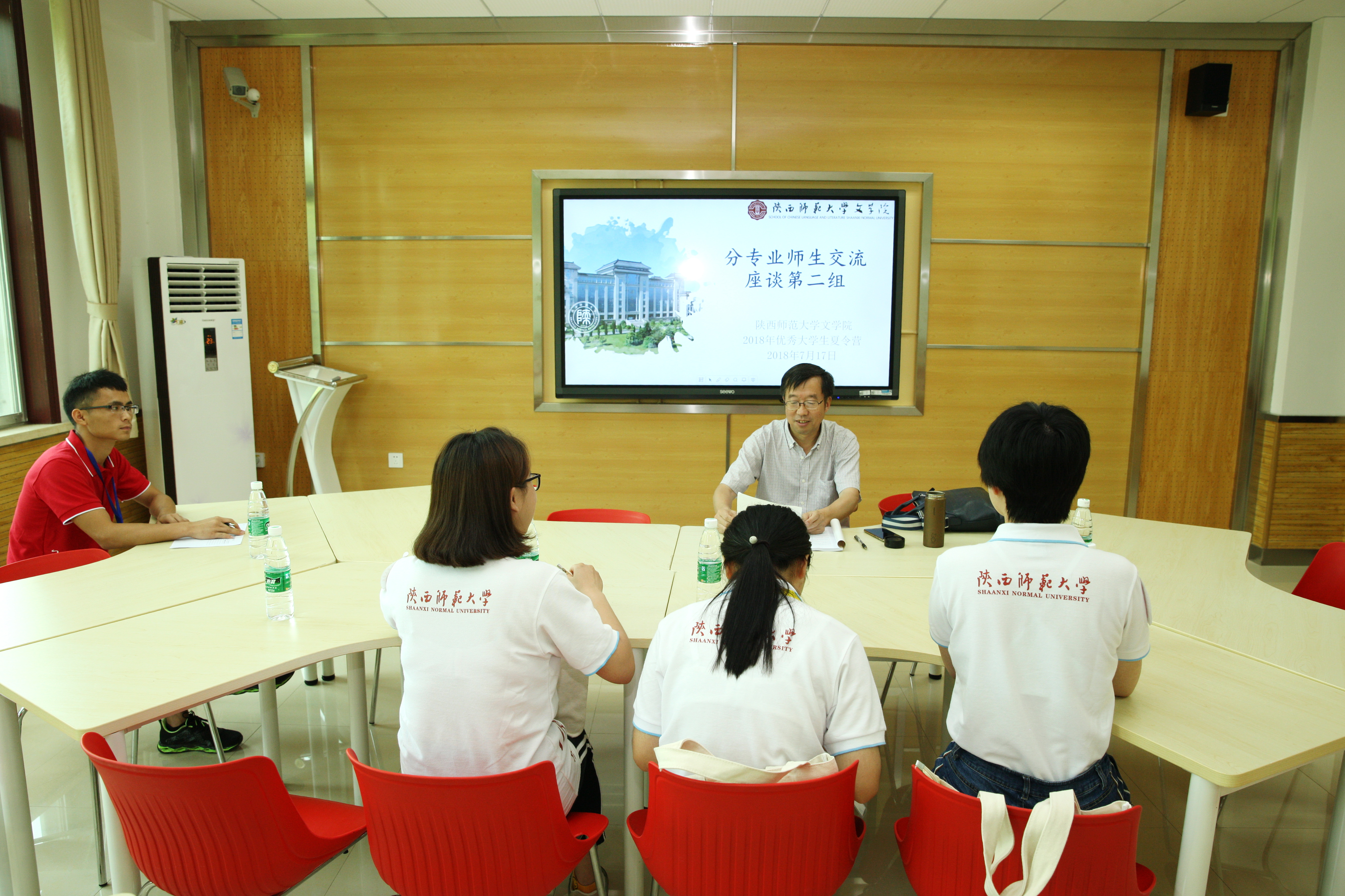 讲座结束后,夏令营营员根据自己的兴趣和拟报考研究生专业的不同分为三组,分别与中国现当代文学专业的李跃力老师、语言学专业的黑维强老师、中国古代文学专业的柏俊才老师进行了交流。三位老师对营员们现阶段取得的成绩表示了肯定,解答了同学们在专业学习方面的问题和疑惑。