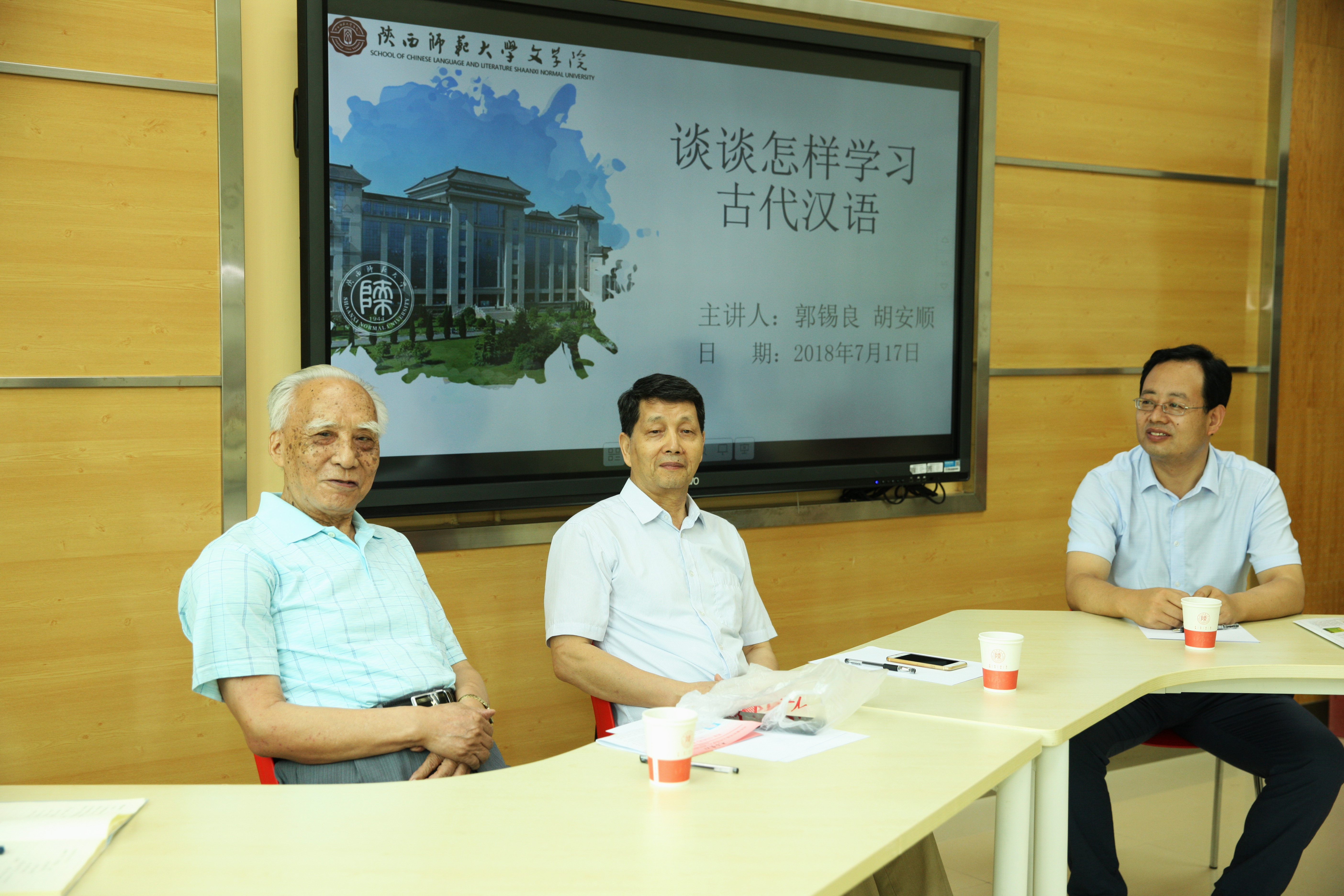 7月17日上午8点半,北京大学中文系郭锡良教授、公司胡安顺教授在文渊楼1段1217教室为夏令营营员作了《谈谈怎样学习古代汉语》的学术讲座,围绕落实字词句的学习、当前语言学研究的热点、加强汉语学习与文化自信等问题,做了精彩的演讲,并与同学们展开了讨论交流。两个小时的活动结束后,营员们仍然意犹未尽,纷纷表示受益匪浅,收获良多。