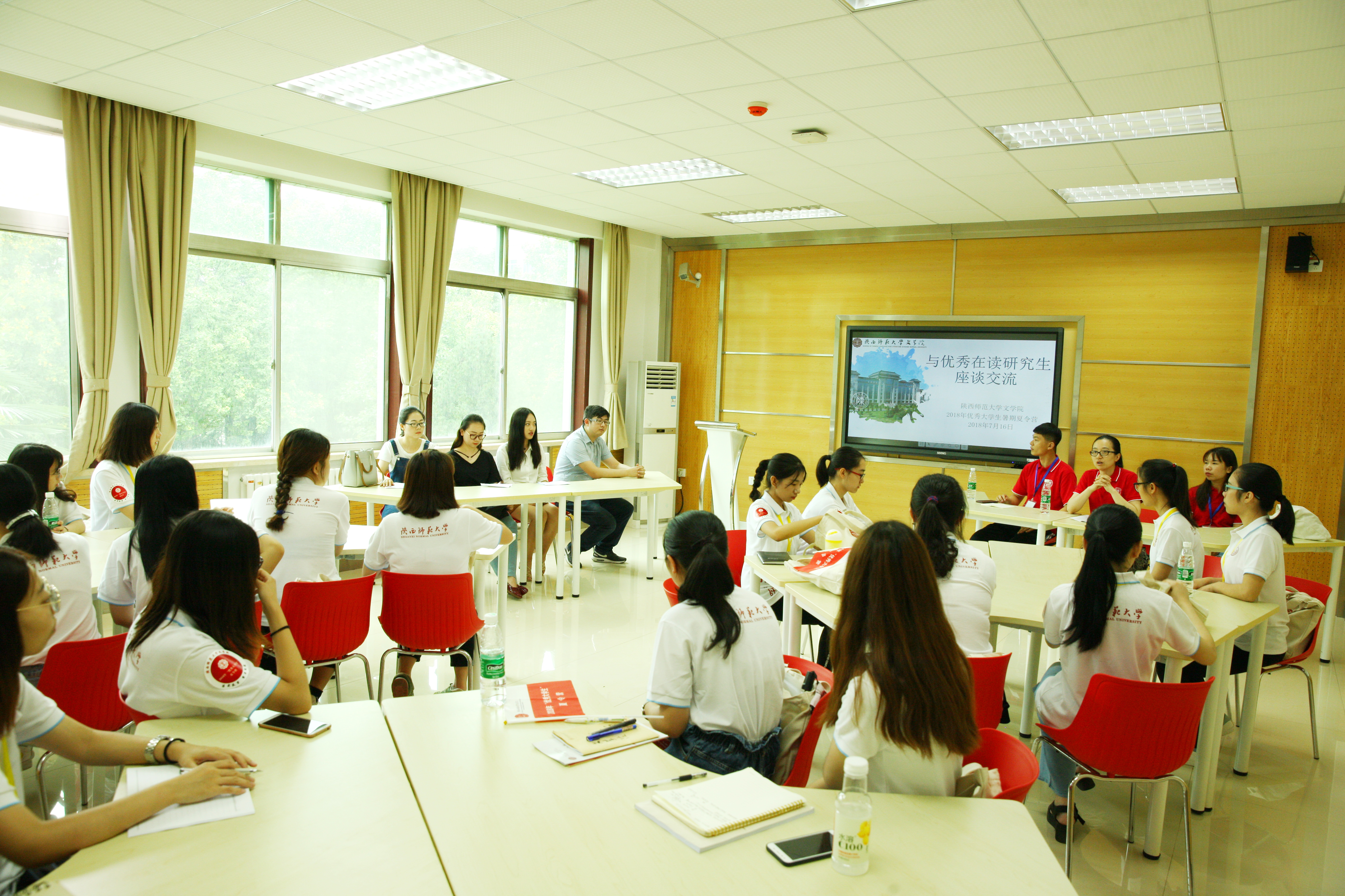 四位在读研究生讲述了自己在陕师大生活和学习的感受和体会。2016级古代文学专业的刘悦同学介绍了BETVICTOR的整体学术氛围和学术风气; 2017级古代文学专业的王旭文和现当代文学专业的黄一晨分别介绍了自己本专业的研究特色和学科魅力;从本科至研究生在BETVICTOR度过了六年的董敏同学从后勤生活、员工活动等方面分享了自己的经历和感受。