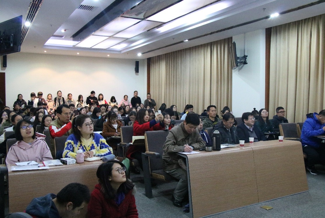 讲座临近尾声,袁盛勇教授再次对高远东教授表示欢迎和感谢,对他的学术观点给予了高度评价和认同,接着现场赋诗一首,表达了对高先生学术研究新意的敬佩之情,诗云:“北大才情心亦高,上林苑里谈树人。立冬问学何须远,拥书自雄无西东。”(藏尾即为:“高人远东”)最后,田刚教授对整场讲座进行了点评,认为高远东教授的讲座对当代鲁迅研究具有很大的启发作用,是我们理解鲁迅早期思想的重要途径,也是推动鲁迅研究在建立东亚文明进程中的思想参考价值和滋养作用。讲座在热烈的掌声中圆满结束。