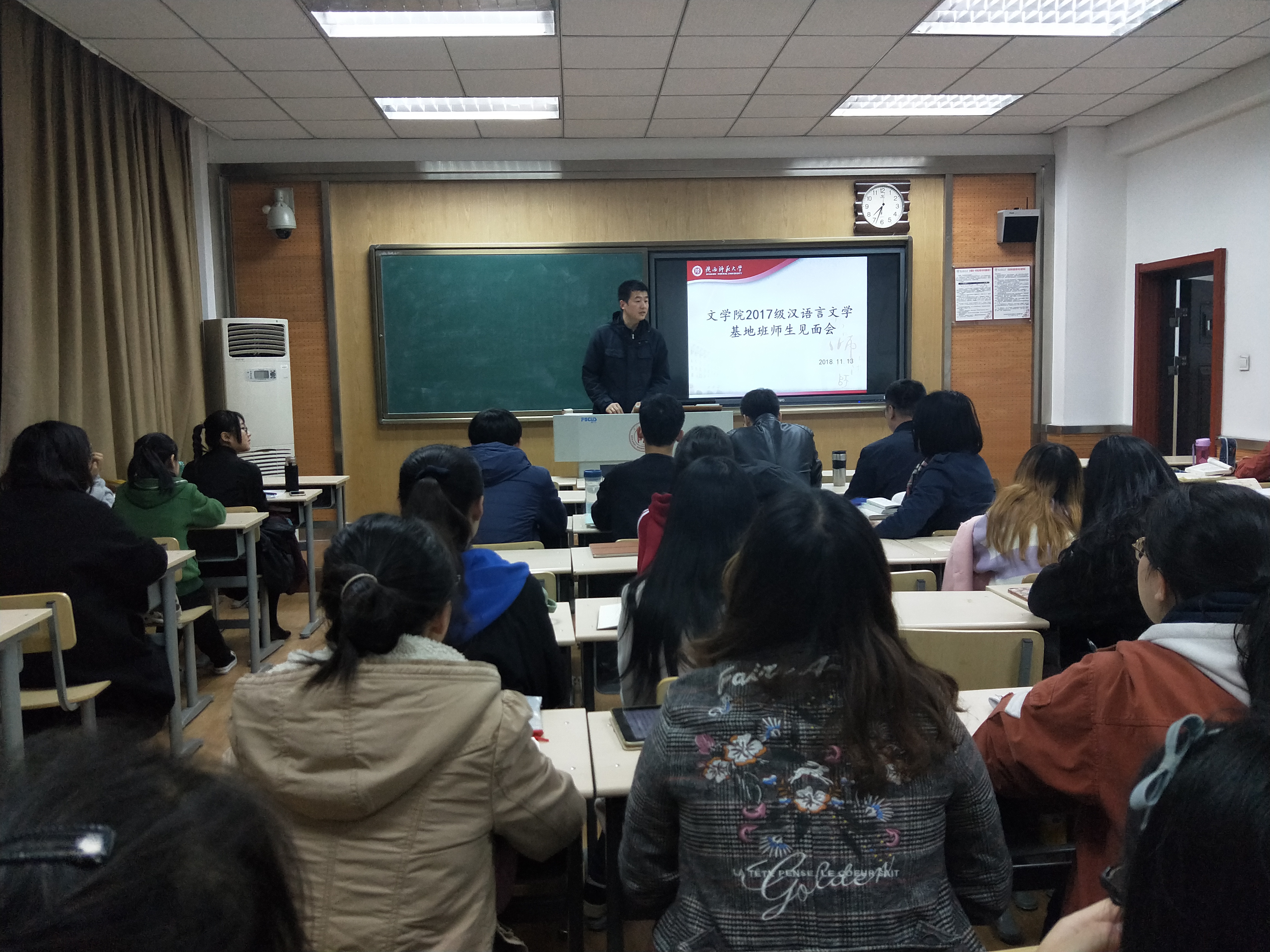 (通讯员:文苑)为促进师生交流、更好地落实开展基地班建设工作,17级汉语言文学基地班“师生见面会”于11月13日19:30在长安校区文渊楼3105教室举行。公司副经理李跃力、基地班班主任杨国庆、17级辅导员侯立及17级汉语言文学基地班全体同学参加了此次见面会。活动由杨国庆老师主持,以读书会的部署工作为主要内容,同时听取员工建议、解答员工困惑。