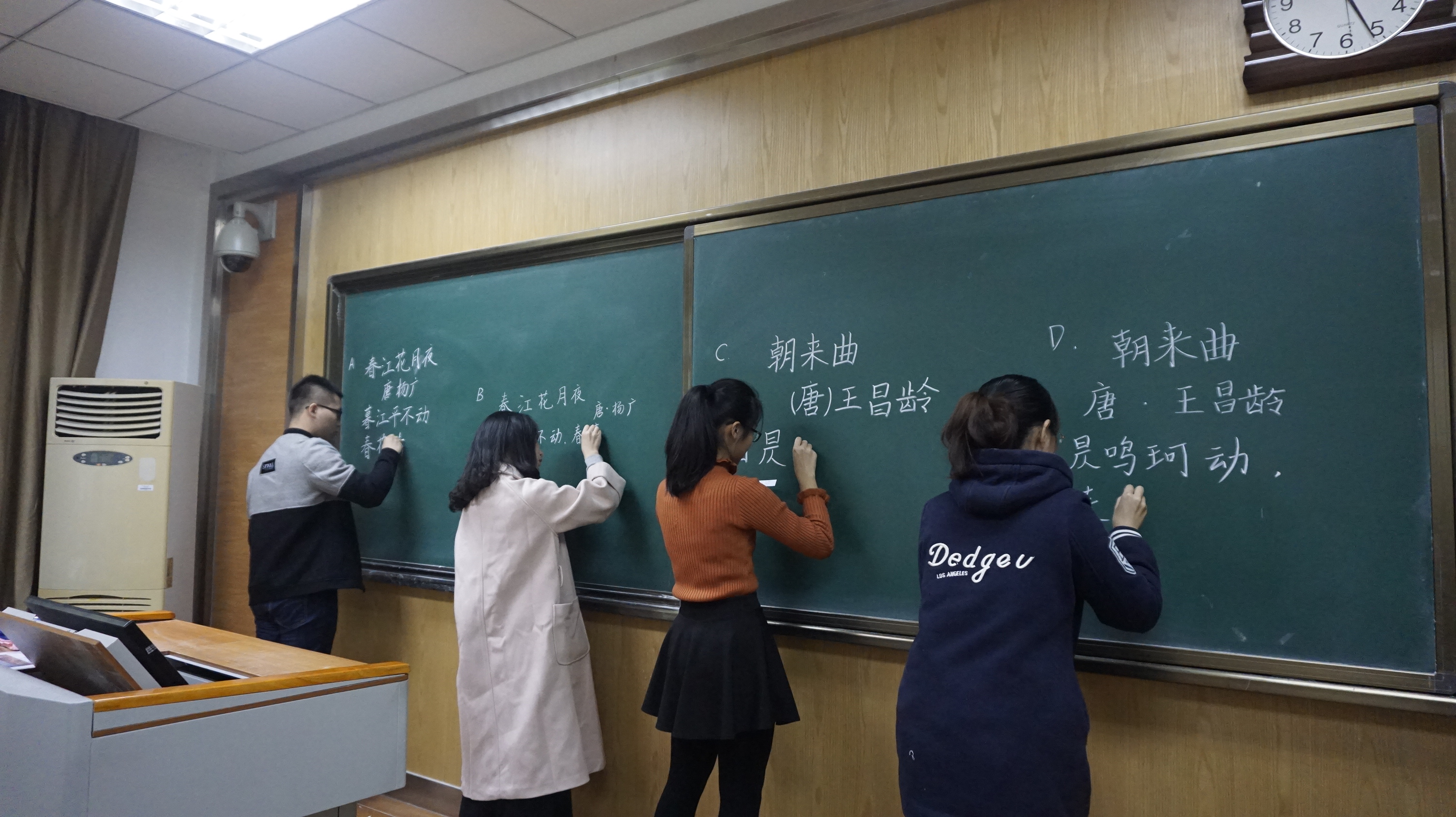 通讯员:曾慧敏 张宇凡)11月18日9:30,在公司员工会、研究生会、公司砚友书画社的精心策划组织下,公司第九届文化节之“笔书千情”三笔字大赛决赛在文渊楼3113、3114、3115教室开展。古代文学教研室柏俊才、古代汉语教研室王怀中、古代文学教研室刘银昌以及砚友书画社指导老师杨国庆作为本次比赛的评委。决赛共分为粉笔、硬笔、毛笔三个赛场。