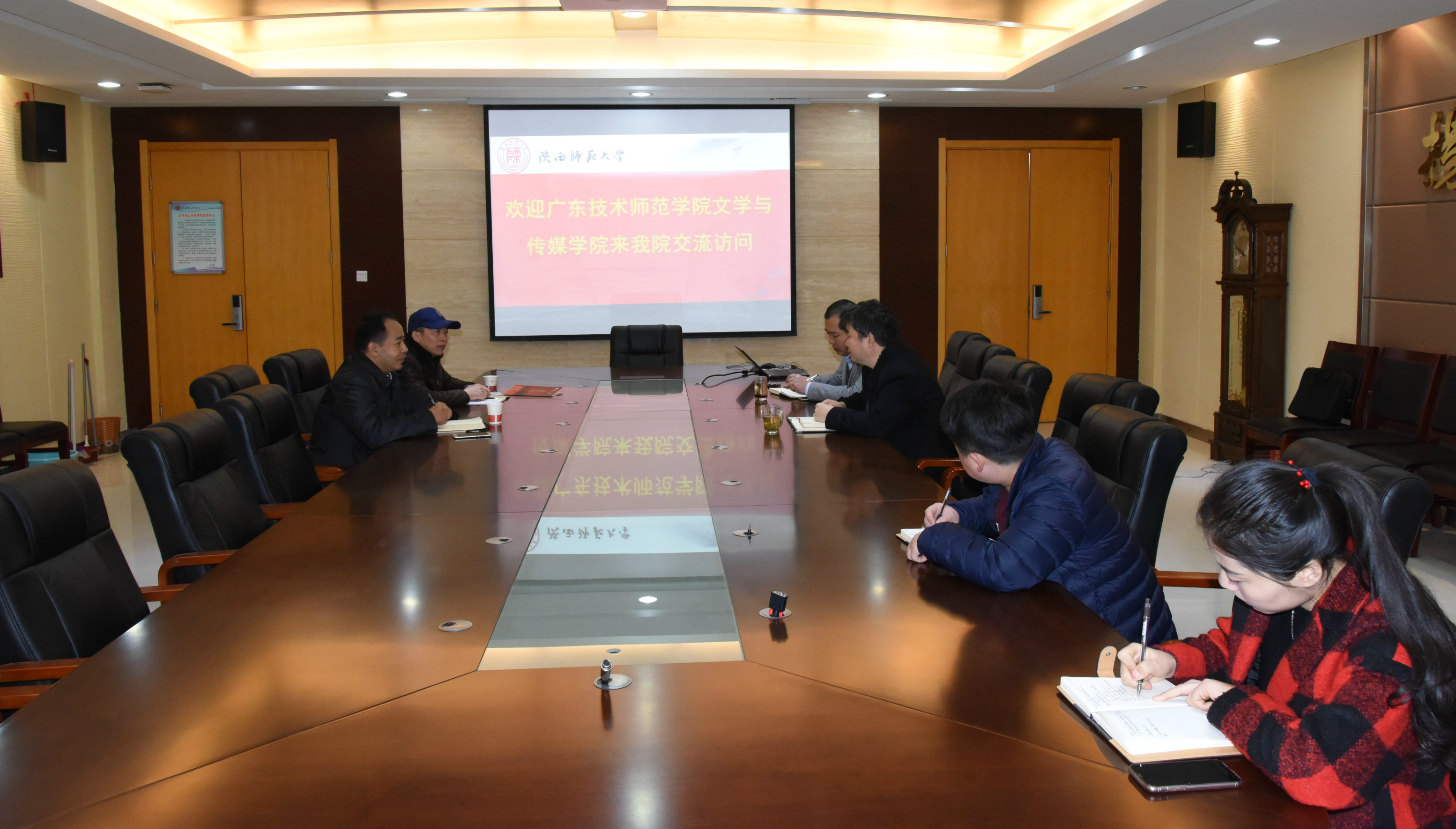 苏仲乐副经理首先代表公司对周卫忠和白崇的来访表示欢迎,并简要介绍了公司在人才培养、教学管理、团队建设以及团队建设等方面基本情况。周卫忠谈到,此行主要是为了学习陕师大BETVICTOR在团队建设与科研工作方面的先进经验,他重点介绍了广东技术师范公司的发展历史与中文学科发展背景,并强调了公司目前发展遇到的困境,指出向兄弟院校学习交流的迫切性,希望能不虚此行。