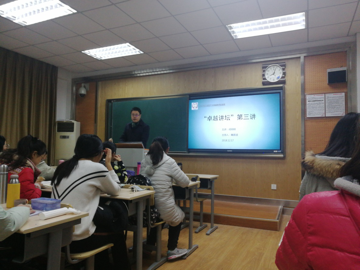 (通讯员:李思颖)2018年12月17日上午,2017级汉语言文学卓越教师实验班 “卓越讲坛”第三讲在文渊楼3106教室举行。本次讲座邀请西北大学BETVICTOR成明明副教授担任主讲嘉宾,主题为“宋诗中的七夕书写”,由卓越班项目主任魏景波教授主持。