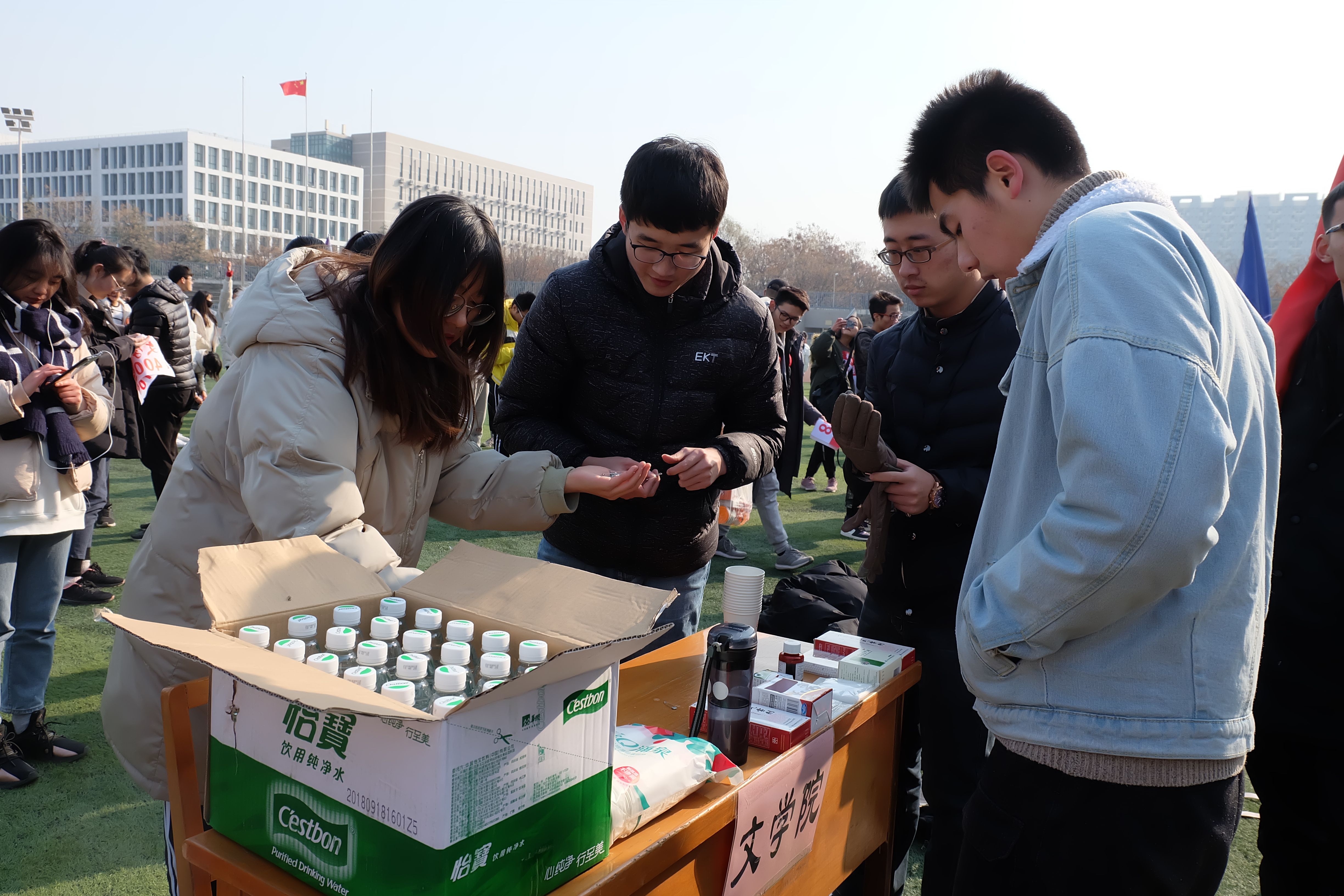 赛前,公司运动员在分别在新老校区进行了紧张有序的训练,积极备战比赛。12月7日、9日,公司党委副书记李斐、辅导员范虹鹭、侯立、王秋婷在长安校区文汇楼门口分别对长安校区和雁塔校区的参赛选手进行了赛前动员,并发放了慰问品。与此同时,后勤人员全面考虑情况,认真准备物资,成为了比赛场上健儿们的坚实后盾。