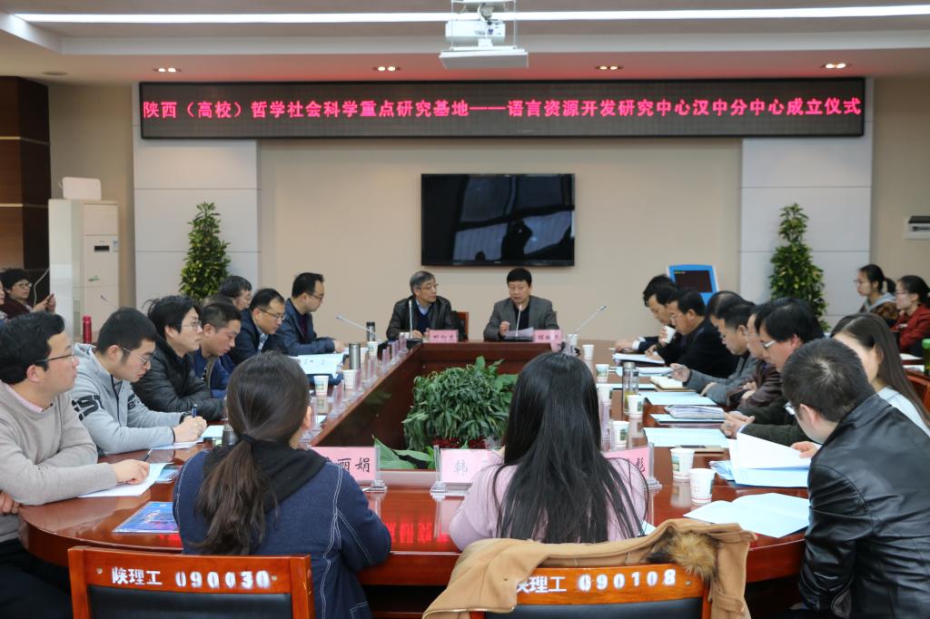 (通讯员:侯治中)3月23日上午,陕西(高校)哲学社会科学重点研究基地——语言资源开发研究中心汉中分中心在陕西理工大学成立。来自公司、陕西理工大学、西安外国语大学、西安石油大学、延安大学、西藏民族大学、陕西中医药大学、渭南师范公司、榆林公司等9所高校的30余位专家学者出席了成立仪式。活动由语言资源开发研究中心副主任柯西钢教授主持。