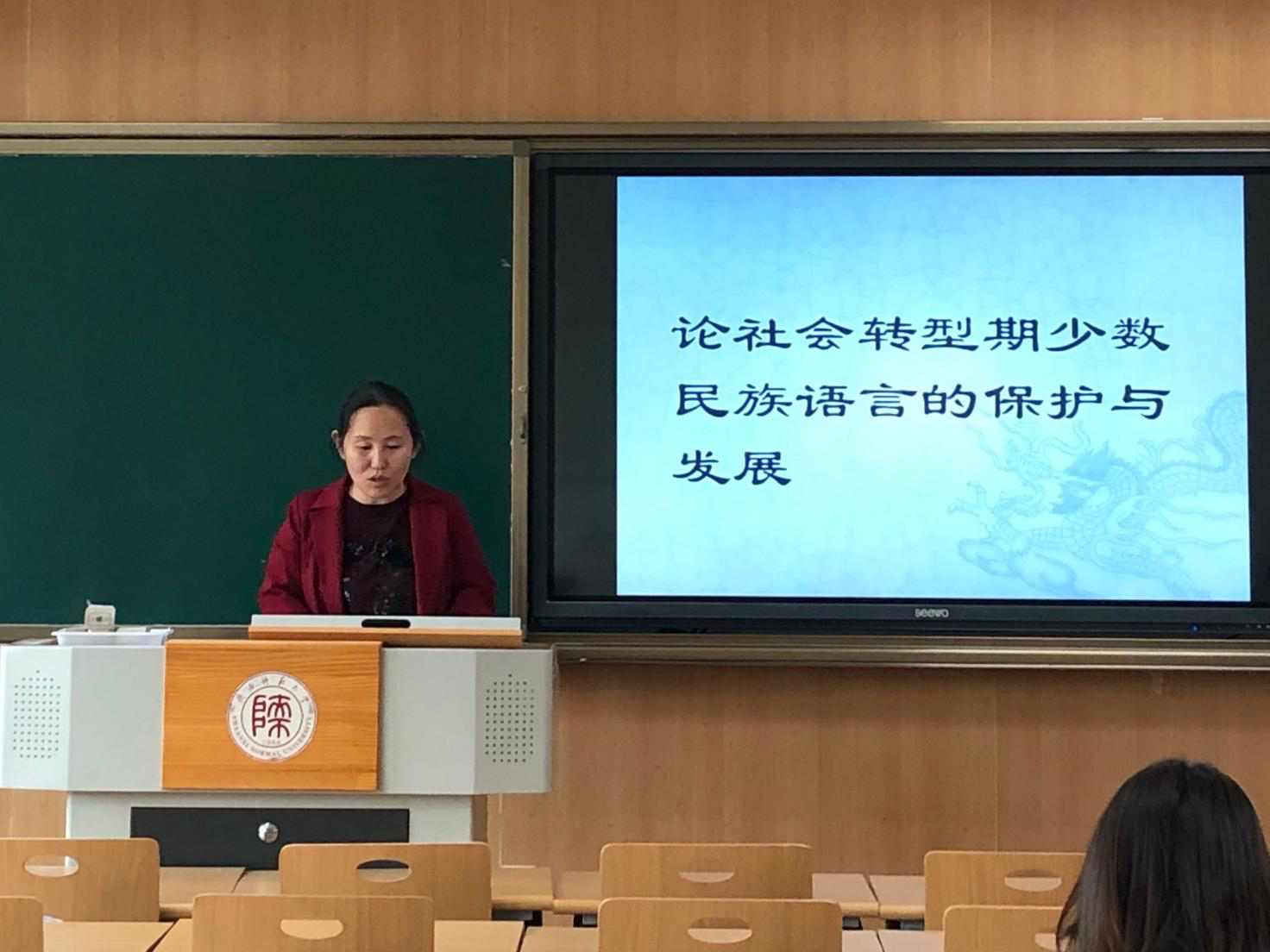 2019年3月25日,第63场博士学术报告以《论社会转型期少数民族语言的保护与发展》为题,由语言学及应用语言学专业博士研究生高红娜主讲。她首先阐明,当前中国处于经济政治改革进一步深化的社会转型期,保护与发展少数民族语言有重要意义。接着,她具体从语言需要多样性、语言问题与国家安全等方面进行了论述。同时,她指出我国少数民族语言发展所面临的一些问题,并且针对这些问题提出少数民族语言保护与发展的对策。最后,她从保护语言生态切入,对背后涉及的自然生态予以观照。