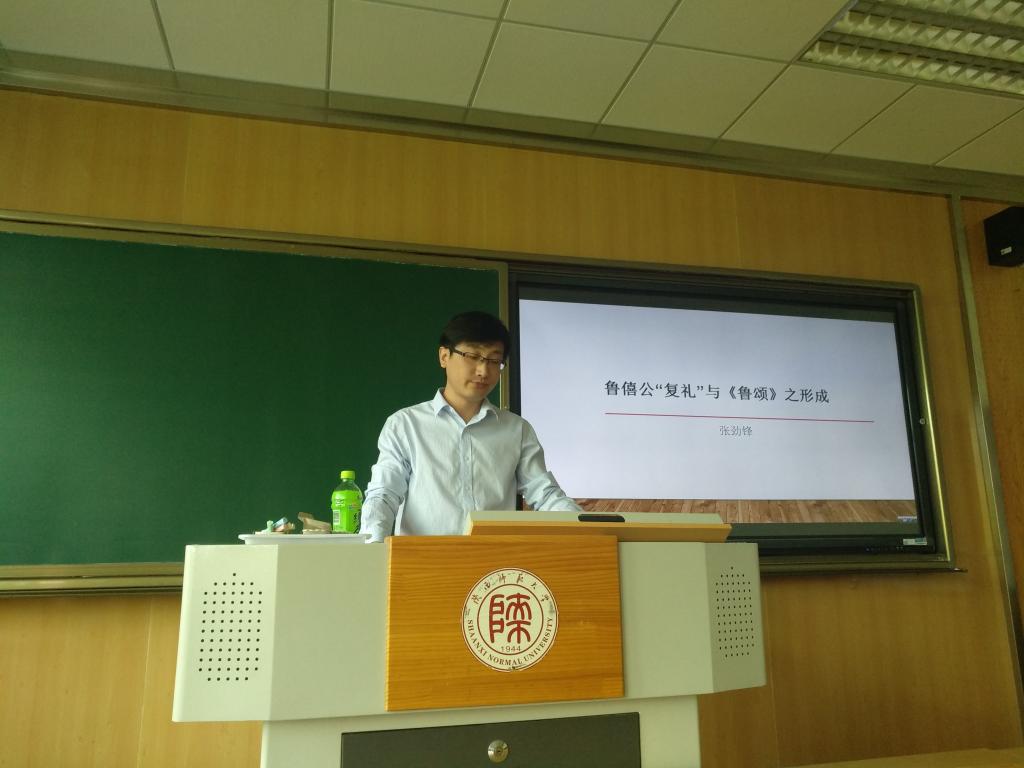2019年4月19日,第84场博士学术报告以《鲁僖公复礼与<鲁颂>之形成》为题,由中国古代文学专业博士研究生张劲峰主讲。张劲峰首先从鲁颂中的“新作南门”与鲁僖公复礼的关系讲起,通过对《诗经·大雅》《礼记·王制》《左传》等材料中相关描述进行分析,得出南门实际上是鲁国行礼必经之路,揭示了实际上是鲁僖公为了复礼而“新作南门”。接着,他从历史动因角度分析鲁之争霸与僖公复礼的原因。鲁国作为周公的封地,其礼乐实力是相当强的,为了在争霸中有一席之地,鲁国开始加强对礼乐制度的重视,这也就是鲁颂创作的原因之一。报告内容丰富,阐释详细充分,拓展了同学们的研究视野。