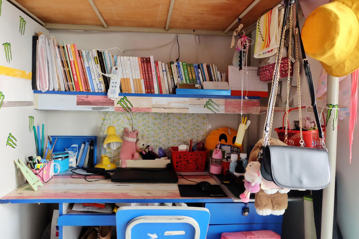 1、绝大部分宿舍物品摆放整齐划一,干净整洁