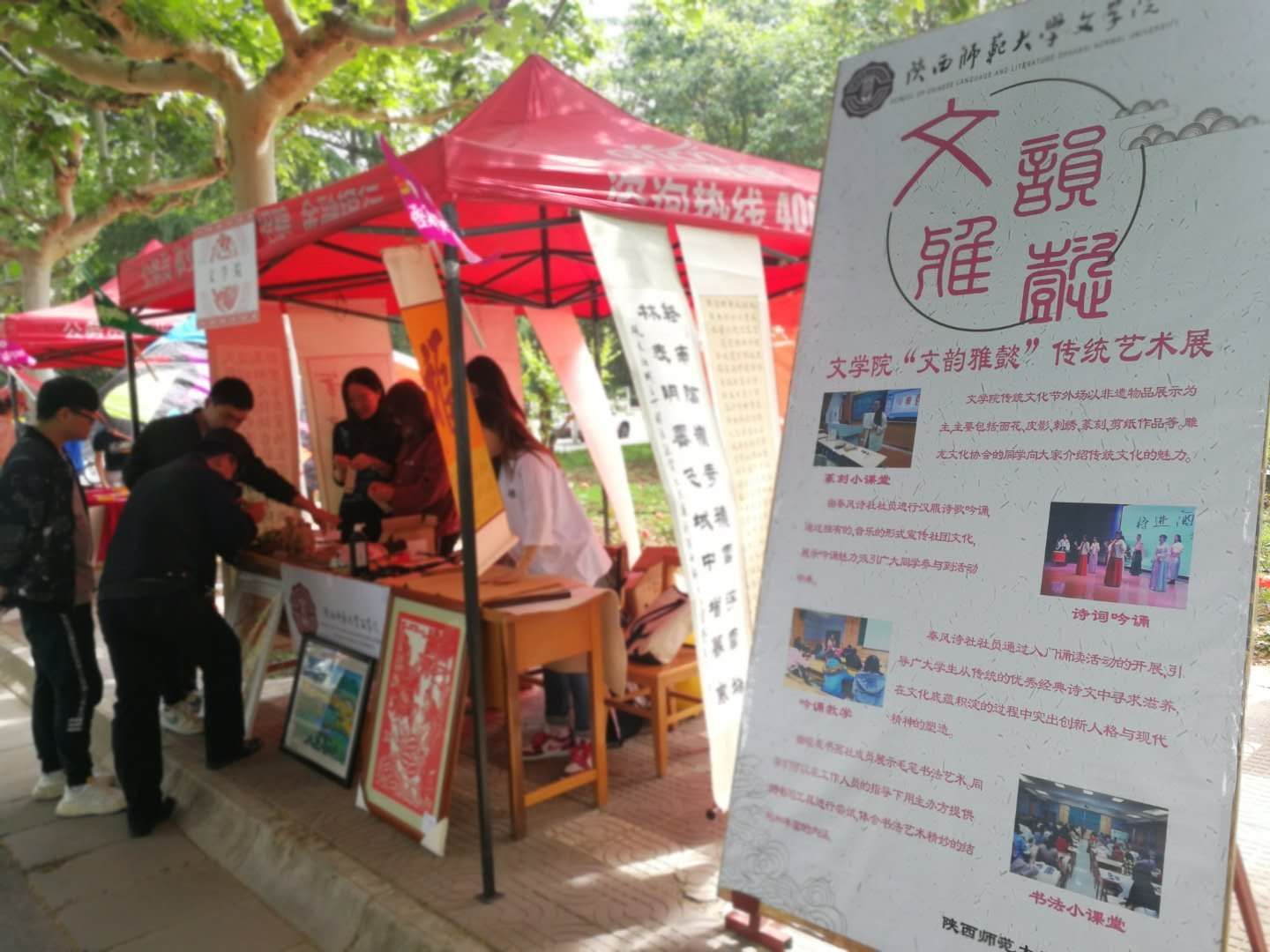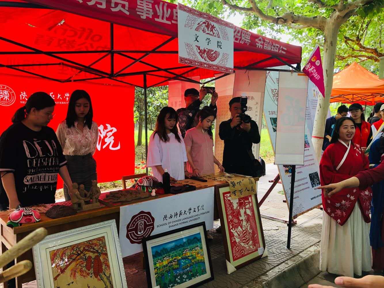 BETVICTOR此次传统艺术展以非物质文化展示为主,涵盖面花、皮影、刺绣、篆刻、剪纸、泥塑、木版年画等作品。“全国百强国学社团”秦风诗社的同学们进行了汉服诗歌吟诵的现场表演,吟诵的魅力与诗词的美感引得师生驻足观看。雕龙文化协会的同学们向前来参观的师生介绍了展品的材质、创作方法、内涵意义以及文化价值,精美的艺术品与精彩的讲解使师生惊叹不已。连续五年被评为“十佳社团”的砚友书画社的同学们伏案研磨,展现了毛笔书法和汉字的圆通流转之美,并于观众互动,共同体会笔墨纸砚中深厚丰富的文化内涵,社员们悉心指导,现场书写精美书签作为奖励相送。活动取得圆满成功。