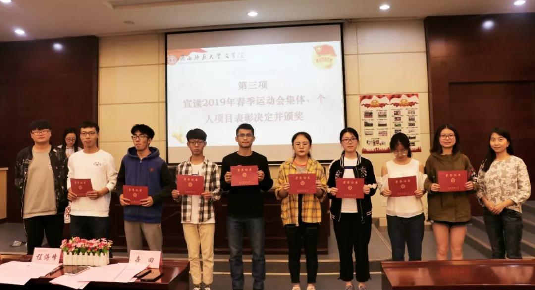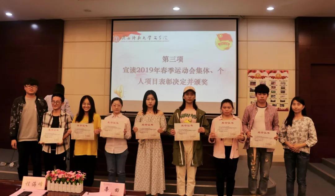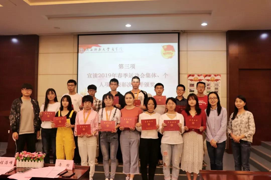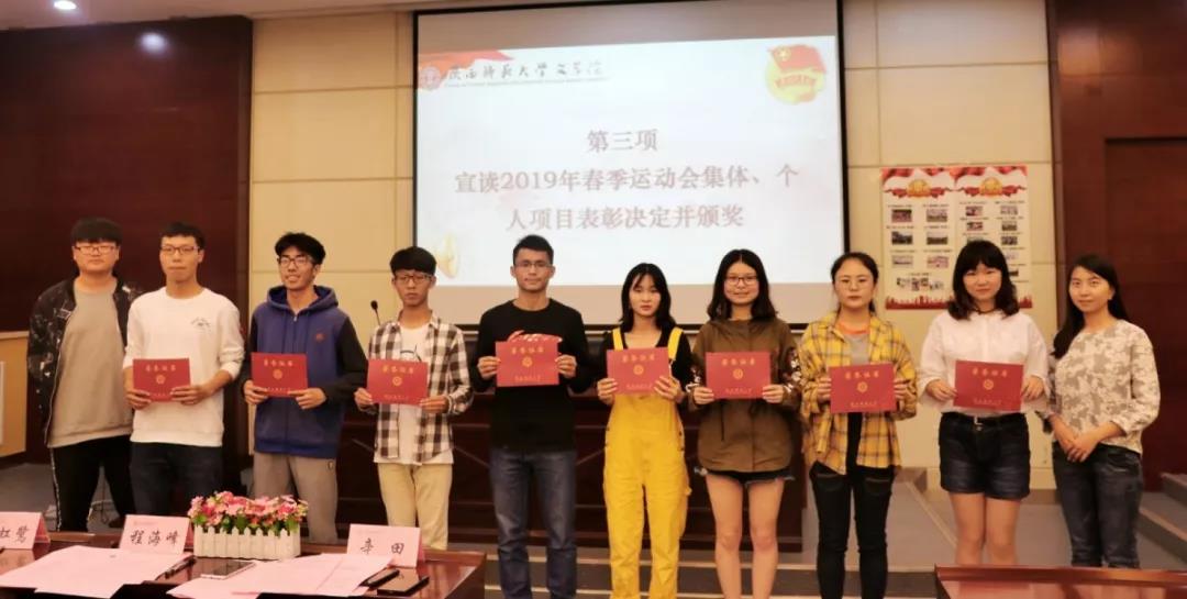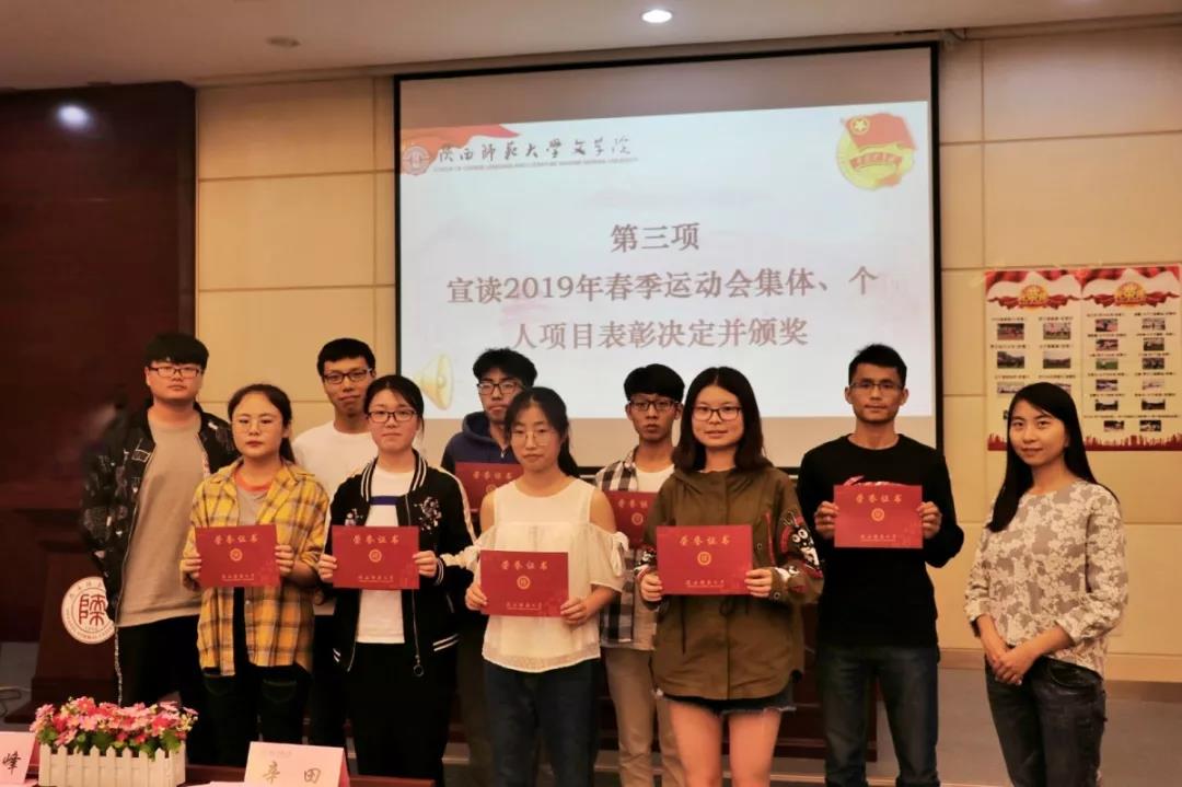 5月17日下午13:00,BETVICTOR2019年共青团创建评优暨校运会表彰大会在长安校区文汇楼A段111报告厅召开。BETVICTOR团委书记辛田,辅导员范虹鹭、程海峰及获奖同学代表参加会议,会议由辛田老师主持。