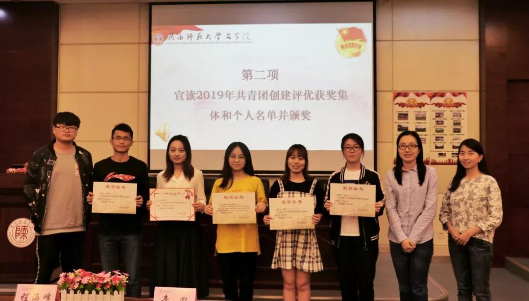 与会老师为五四红旗优秀团支部、校级示范团支部、初级团校建设先进集体、科技创新先进集体、霍楚宁等7名优秀团支部书记、刘天怡等16名优秀团干部及其他获奖集体和个人颁奖。