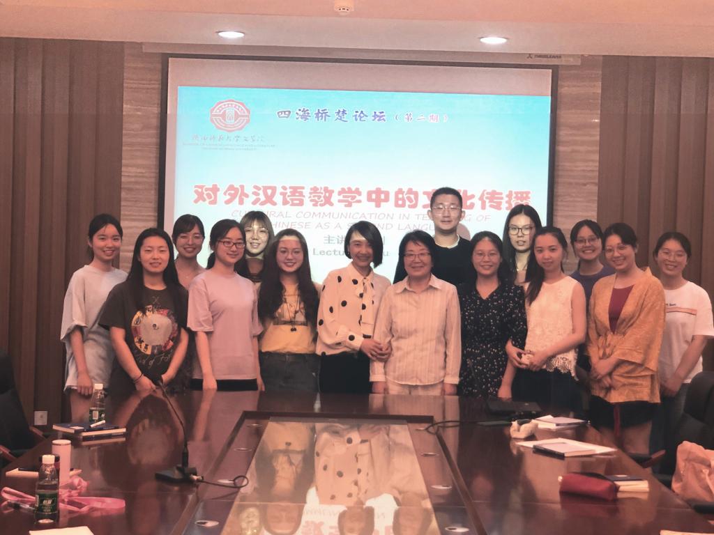 (通讯员:梁素萍)2019年5月26日下午,公司16、17级汉语国际教育专业在BETVICTOR文汇楼C段524会议室成功举办第二期“四海桥楚论坛”。原公司对外汉语系第一任系主任刘静教授,现美国范德堡大学Vanderbilt University中文教师,为两级员工带来“对外汉语教学中的文化传播”专题讲座,并由公司汉语国际教育本科专业负责人李虹主持座谈活动。