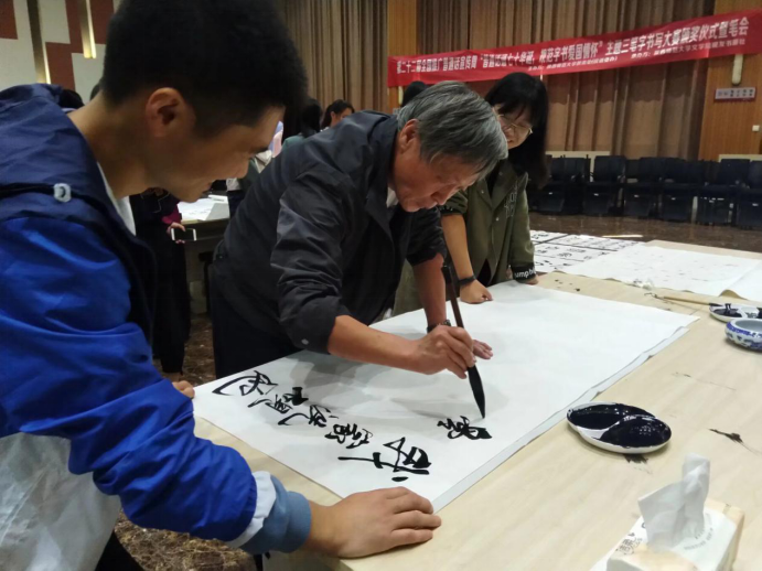 颁奖典礼结束之后,老师们和获奖员工共同参与了笔会,大家挥毫泼墨,切磋书艺,同学们热情高涨,现场气氛十分活跃。
