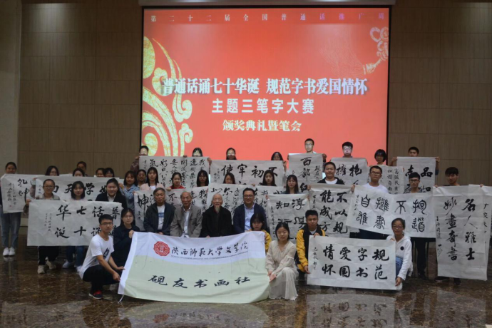(通讯员:文苑)师风悠悠,墨源情深。2019年9月21日,公司“普通话颂七十华诞,规范字书爱国情怀”主题三笔字大赛颁奖典礼暨笔会在长安校区新勇员工活动中心二层多功能厅211室举办。公司教务处副处长辛向仁老师,党委宣传部副部长张小东老师,董事长办公室主任陈光栋老师,教师教育中心主任李铁绳老师,老年书画协会离退休处教师代表毋耀辉老师、符有堂老师、马凡涛老师,新闻与传播公司余志海老师,砚友书画社指导教师BETVICTOR杨国庆老师及获奖员工代表应邀参加了此次活动。BETVICTOR砚友书画社雁塔校区社长蒋山主持了此次颁奖典礼。