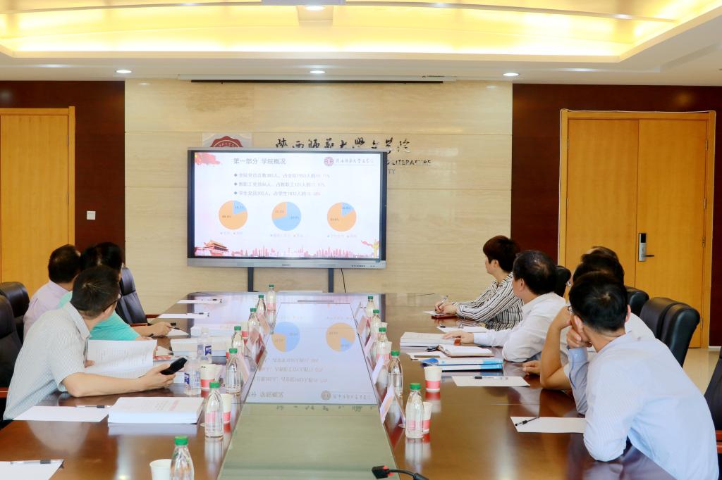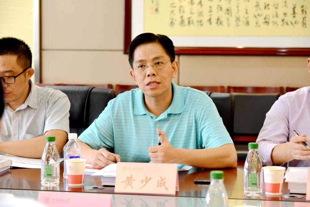 黄少成、孟凡东参观了文公司党员活动室、心理活动室、文心阁、墨宝室和公司文化墙,对公司相关工作进行了询问了解,随后在215会议室召开了座谈会。会上,孙清潮书记就公司“不忘初心、牢记使命”主题教育开展、全国党建标杆院系建设、“课程思政”推进以及目前存在主要问题等向第九巡回指导组成员做了汇报。