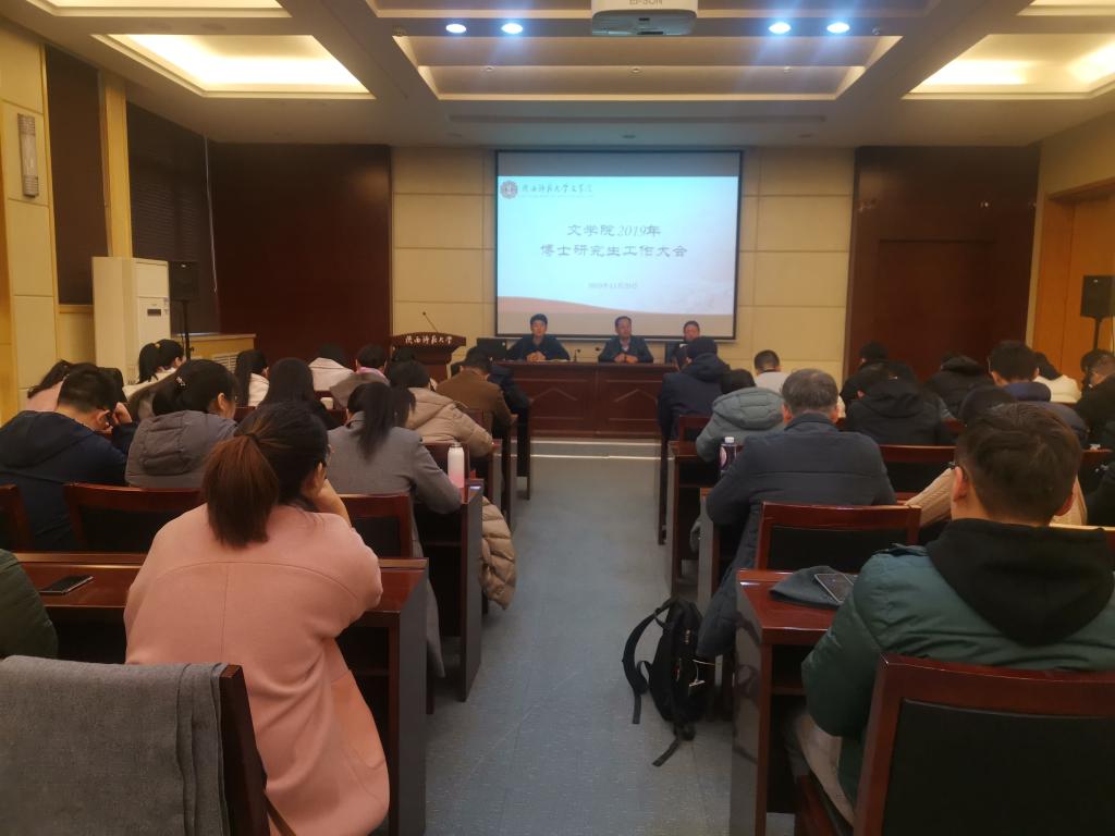 (通讯员:张芸倩)11月29日上午,公司2019年博士研究生工作大会在文汇楼A段111报告厅召开。副经理杨晓斌、教学秘书王鸿、研究生辅导员侯立出席会议。