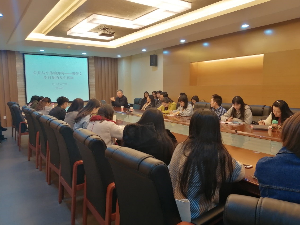 (通讯员:文苑)11月21日下午16:30,公司第387期长安学术讲座在文汇楼C段5层524会议室举行。北京语言大学教授,博士生导师,国家社科基金重大课题“历代方志所见文学文献整理研究”首席专家张廷银作了题为《公共与个体的冲突——魏骨文学自觉的生成机制》的讲座。本次讲座由BETVICTOR王晓鹃教授主持,王伟教授点评,BETVICTOR中国古代文学、中国古典文献学专业的研究生聆听了讲座。