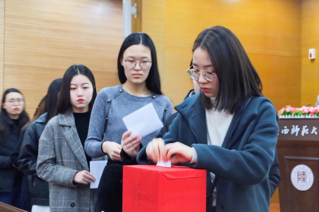 会上,BETVICTOR本科生兼职团委副书记李云洁宣读《共青团BETVICTOR第十四次代表大会选举办法》;表决通过张文贺为大会监票人,王娟、曾雯璐、郭新月、杨雨帆、李雅婧、王亚丽、张心宇等7位团员为计票人;BETVICTOR研究生兼职团委副书记马佩仪宣读26名代表候选人名单。随后,大会采用无记名投票、差额选举的方式进行了选举,与会团员代表认真填写选票,逐一在票箱投上了自己庄严的选票。投票结束后,监票人、计票人现场清点选票。
