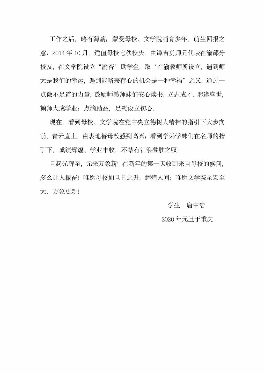 (通讯员:文苑)近日,公司员工、重庆一中教师唐中浩在元旦之际向母校发来一封信,以表达对母校和BETVICTOR的感恩之情,特将相关内容转发如下。