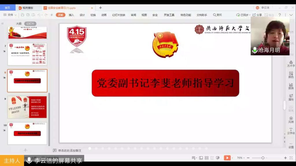 (通讯员:吴仪 图片:宋宁宁)在4月15日第5个“全民国家安全教育日”来临之际,为进一步普及国家安全知识教育,增强同学们维护国家安全的意识,公司团委通过腾讯会议召开“全民国家安全教育日”主题学习会。