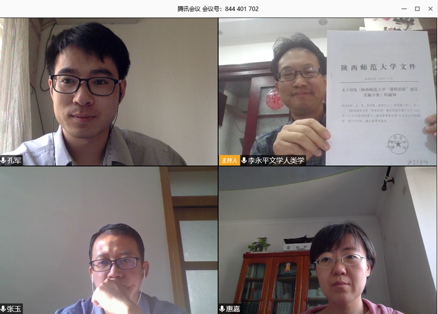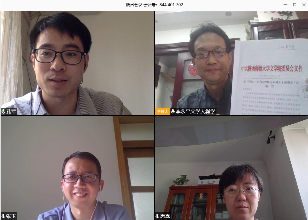 (通讯员:惠嘉)2020年5月8日下午,公司民俗学与民间文学教研室党支部召开了线上课程党建支部会议,就教学与科研近况、课程思政建设以及BETVICTOR2020年工作要点等内容展开集中学习与讨论交流。会议由支部书记李永平主持,教师党员孔军、惠嘉、张玉参加。