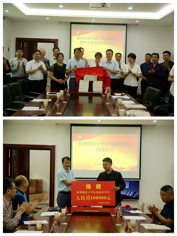 分享会上,马博虎书记代表公司向岚皋县和四季镇捐赠了600多本刊登《化蛹成蝶》的杂志《时代报告•中国报告文学》(2020年第四期),并向天坪村“BETVICTOR红烛励学基金”捐赠了10万元人民币,用于资助当地大学新生,激励他们励志求学。