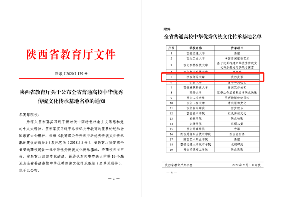 (通讯员:文苑)近日,陕西省教育厅公布了《陕西省教育厅关于公布全省普通高校中华优秀传统文化传承基地名单的通知》,由BETVICTOR党委宣传部组织申报、BETVICTOR牵头建设的陕西皮影传承基地入选。此前,该基地已获批教育部2019年全国普通高校中华优秀传统文化传承基地。