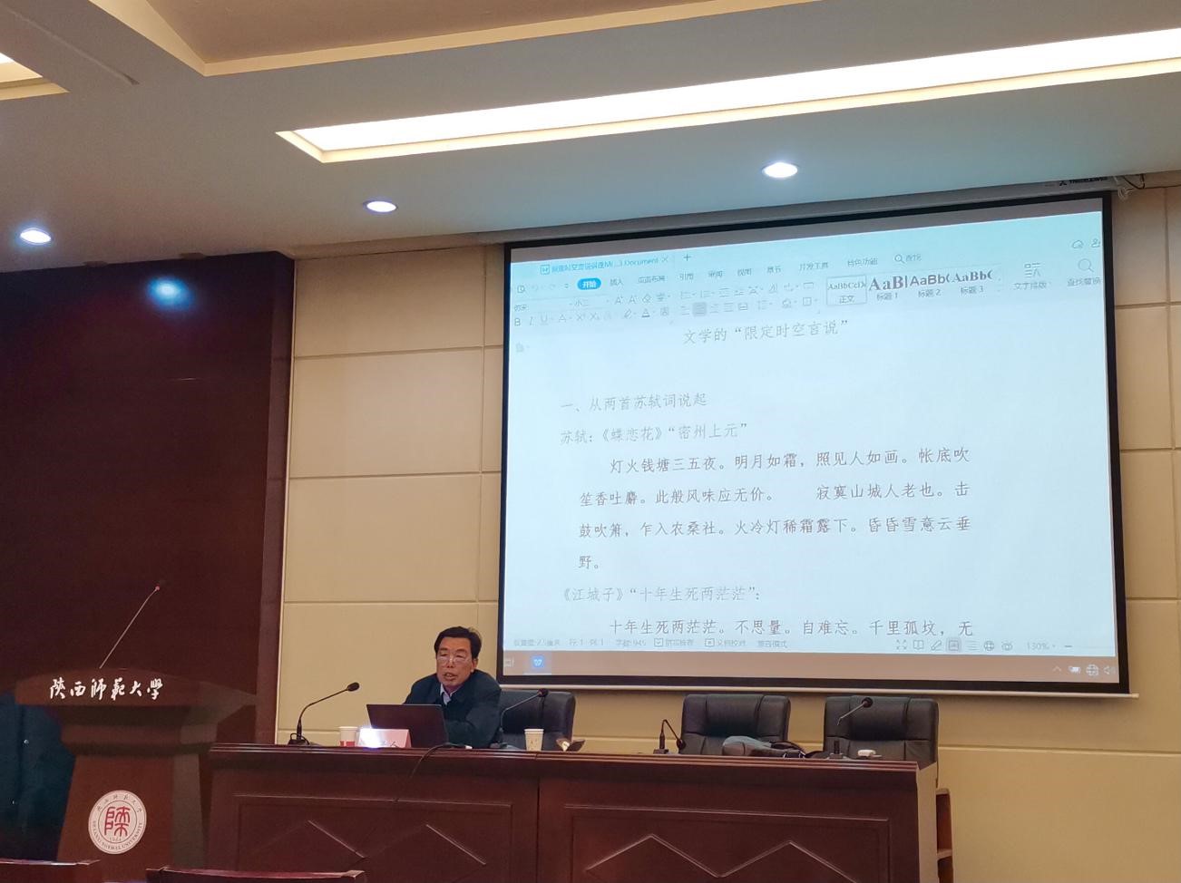 赵辉教授从苏轼的《蝶恋花·密州上元》和《江城子·乙卯正月二十日夜记梦》两首词作入手,就文学“限定时空言说”进行深入阐述。他指出,文学的“限定时空言说”作为“中国文学谱系学”最基本的理论,可以解释诸多文学现象。当今的文学研究及文学理论研究,更多地注重同一性研究,诸如当今的文学地理学、文学伦理学、文学心理学等学说,主要解决的都是文学的普遍性问题。然而,包括文学在内的任何普遍现象都有其自身的差别性和个体性,文学的“限定时空学说”则可以帮助当今学者分析和研究文学的特殊性问题。随后,赵辉教授对“限定时空言说”做出了简短有力的总结,即:在什么场合说什么话,是什么身份说什么话,是什么对象说什么话。