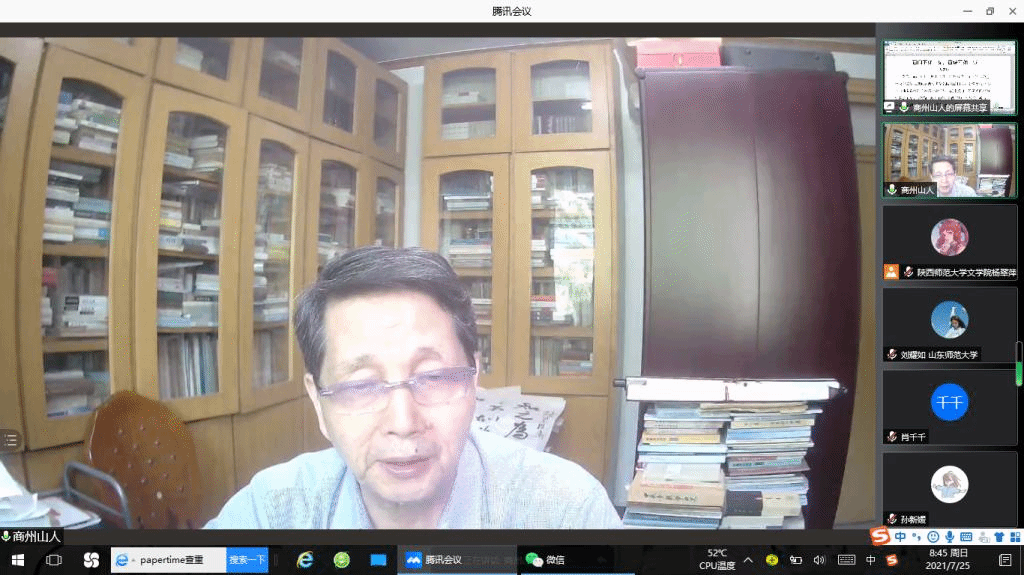 胡安顺教授主要从老员工成长成才与古代汉语研究两个角度出发,为同学进行了深入浅出的阐释。胡教授指出,夏令营营员作为准研究生,首先应提早明确研究方向,并做出实际努力。其次,应充分利用业余时间,培养广泛的学习兴趣,成为一个“多才多艺”、全面发展的青年。最后,就古代汉语的学习,胡教授结合个人实际经验,讲述了“百闻不如一见,百说不如一试”的内涵,倡导营员们在读书、写作、治学中多读勤写、多练勤学。