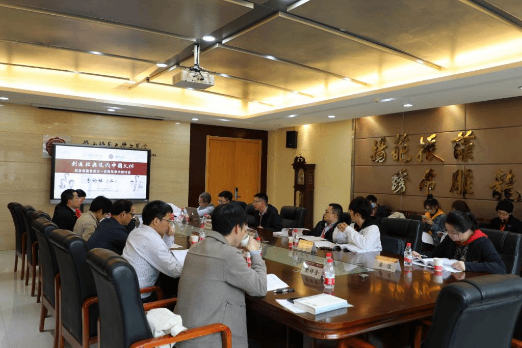 随后召开的学术研讨会共包括上午的主题发言以及下午的两个分论坛与青年论坛。上午的主题发言分别由华东师范大学中文系陈子善教授与《新文学史料》主编郭娟主持、北京大学高远东教授与澳门大学朱寿桐教授评议,郭沫若纪念馆蔡震研究员、李斌研究员;北京大学中文系商金林教授、高远东教授;澳门大学朱寿桐教授;厦门大学王烨教授;乐山师范公司杨胜宽教授分别以郭沫若与创造社的关系、创造社与其周边人物的关系、创造社的文化策略、郭沫若的古代史研究、郭沫若的诗集《女神》以及郁达夫的小说等方面为对象进行了深入的讨论与交流。在下午的分论坛及青年论坛中,来自不同科研院所的23位学者与11位硕博士研究生、2位本科生分别就创造社与现代中国文化、创造社同人的创作与翻译活动、以及创造社史料的考证与梳理等方面先后作了精彩的发言。与会专家达成共识,本次研讨会不仅是创造社成立一百周年的纪念会,更是一场必将载入史册的高水平的学术讨论会。